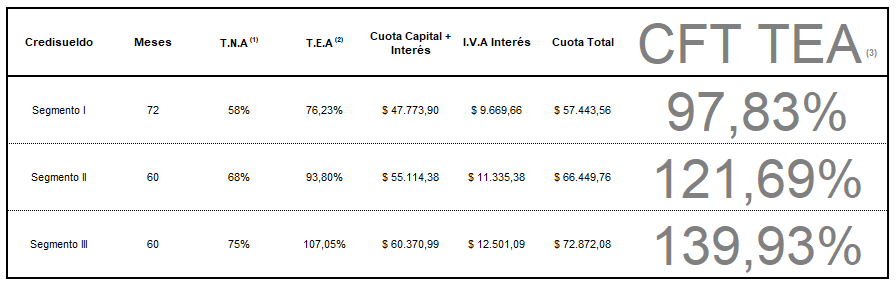 (3) Costo Financiero Total expresado en Tasa Efectiva Anual.