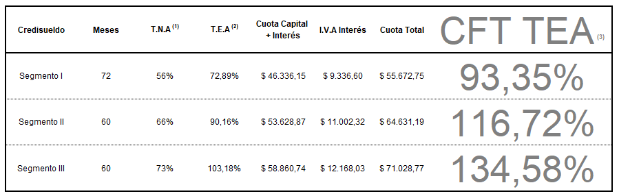 Características:Primera cuota calculada para un préstamo de $ 1.000.000.