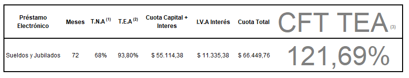 Características:Primera cuota calculada para un préstamo de $ 1.000.000.